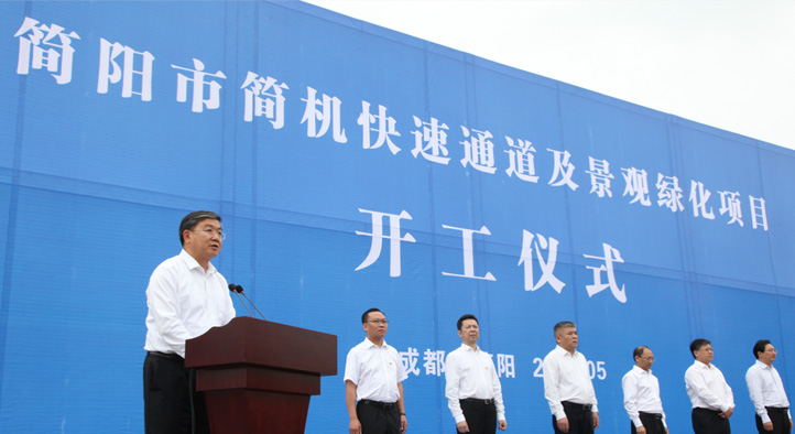 成都天府國際機場交通基礎設施配套工程簡機快速通道及景觀綠化工程項目,在簡陽工程現場舉行開工儀式。