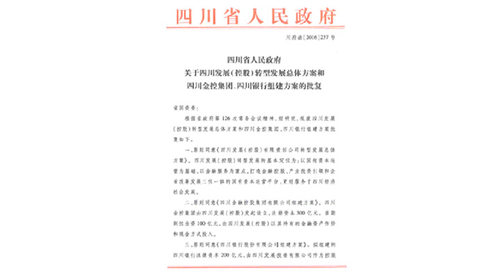 省政府下發《關于組建四川發展(控股)有限責任公司的通知》,同意組建四川發展(控股)有限責任公司。