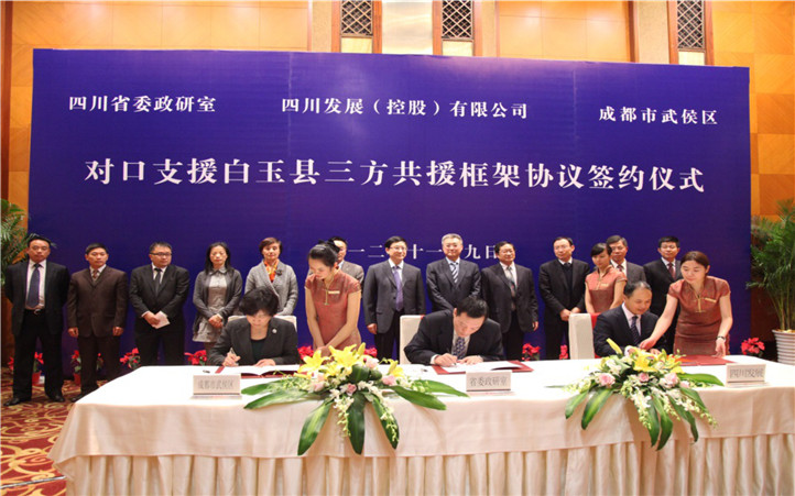 按照四川省委、省政府安排,積極推進對口支援白玉縣工作。與省委政研室、成都市武侯區簽訂三方共同援助框架協議,與白玉縣簽訂中藏藥業暨高原生態產業合作備忘錄。
